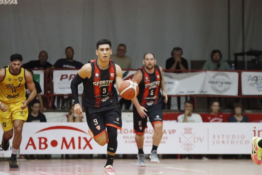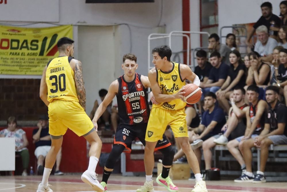 Con cinco minutos jugados del primer cuarto, ganaba Sportivo 15-9; con apariciones de Martínez y Calderón en las ofensivas locales, en tanto Bueno era el goleador de Hindú. Sportivo sacó nueve con un triple de Lizárraga, lo que derivó en el minuto pedido por Beltramo a 3:20 del cierre. El final del cuarto llegó con triunfo local 28-19. Suardi con goleo repartido, la visita dependiendo de Buemo con 10 de los 19 de su equipo.