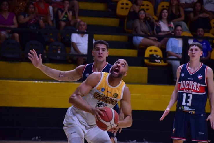 Comu mejoró en defensa, pero no encontraba la fluidez necesaria en ataque para recortar la diferencia con mayor rapidez. Con un parcial de 9-3, el local logró bajar la distancia a menos de dos dígitos (49-41). Las pérdidas del visitante le daban aire y, con 3:40 por jugar, se colocó a solo cinco puntos. El partido entró en un tramo de bajo goleo. Bochas apenas había convertido 6 puntos hasta ese momento. En ese contexto, el aurinegro tomó protagonismo y llegó a ponerse a dos, aunque las imprecisiones ofensivas le impidieron concretar la remontada. Así, Bochas logró sostener la ventaja y se fue al último descanso largo arriba por 58 a 53.