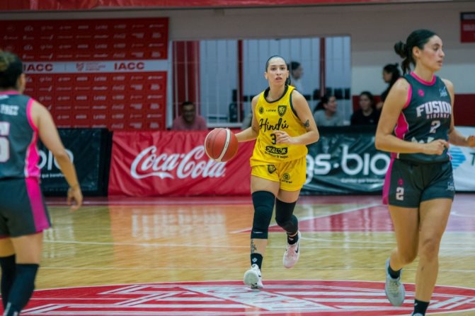 Hindú y Fusión Riojana abrieron la segunda jornada con un partido de altísima intensidad en La Caldera. El primer tiempo fue vertiginoso, con un cuarto para cada equipo: Meliza Niz se destacó en Hindú, mientras que Florencia Ortiz sostuvo a Fusión. Al entretiempo, el elenco de barrio General Paz se imponía 29-25. En el complemento, Fusión Riojana mostró su mejor pasaje de la mano de Ortiz y Santelli, pasando al frente por primera vez 41-36.